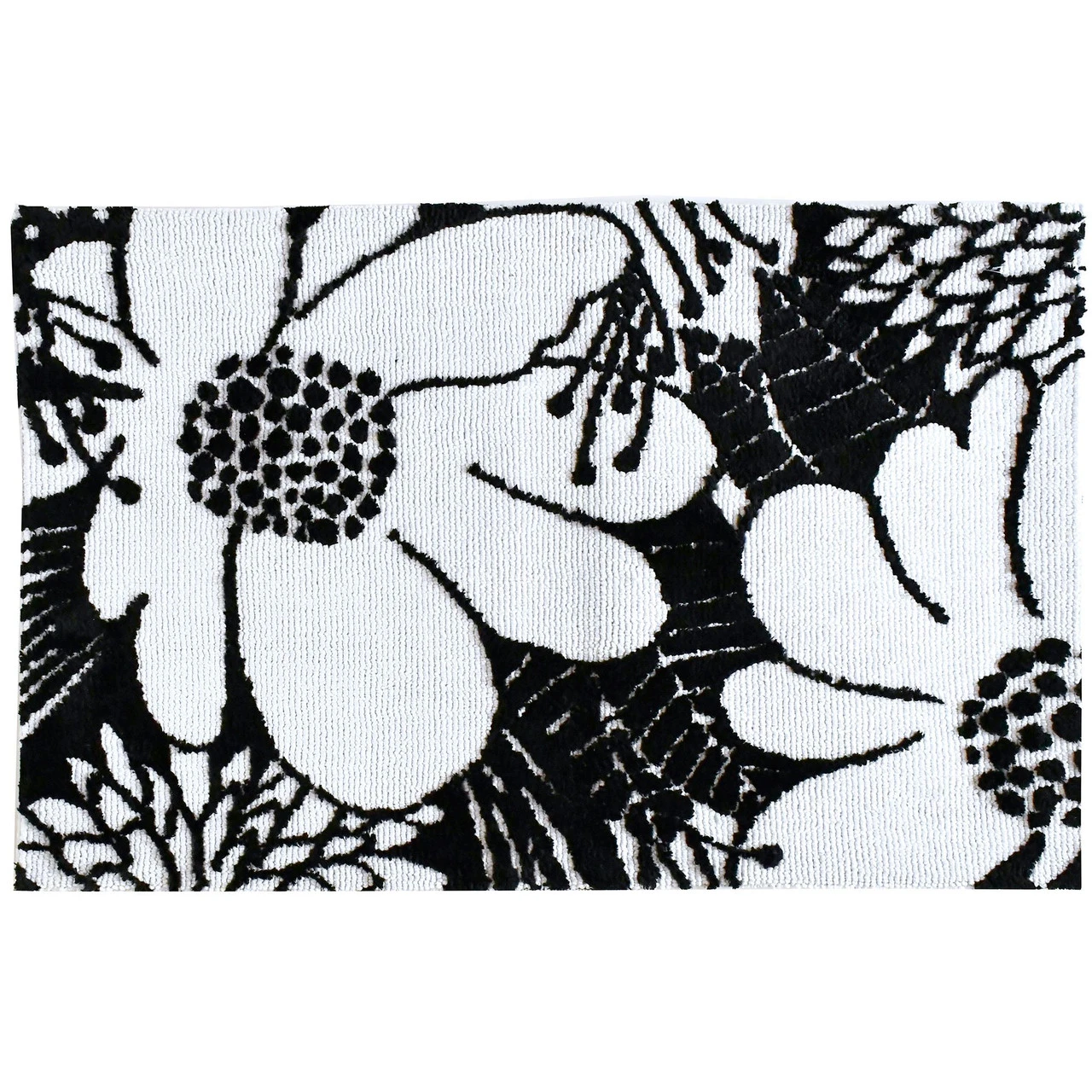 Black and white rectangular area throw rug