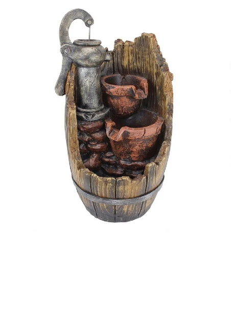 - Illuminated Farm Barrel Cascading Garden Fountain
