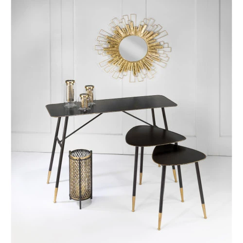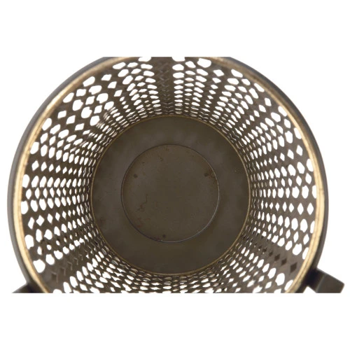 Features stamped metal body with antiqued gold finish
