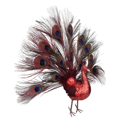 This beautiful peacock has spread out its beautiful feathers will welcome you with warmth and joy. You could attach it to your Christmas tree or floral arrangement and enhance the beauty of your decor. This beautiful, glittered ornament also makes a fabulous gift for your loved ones.