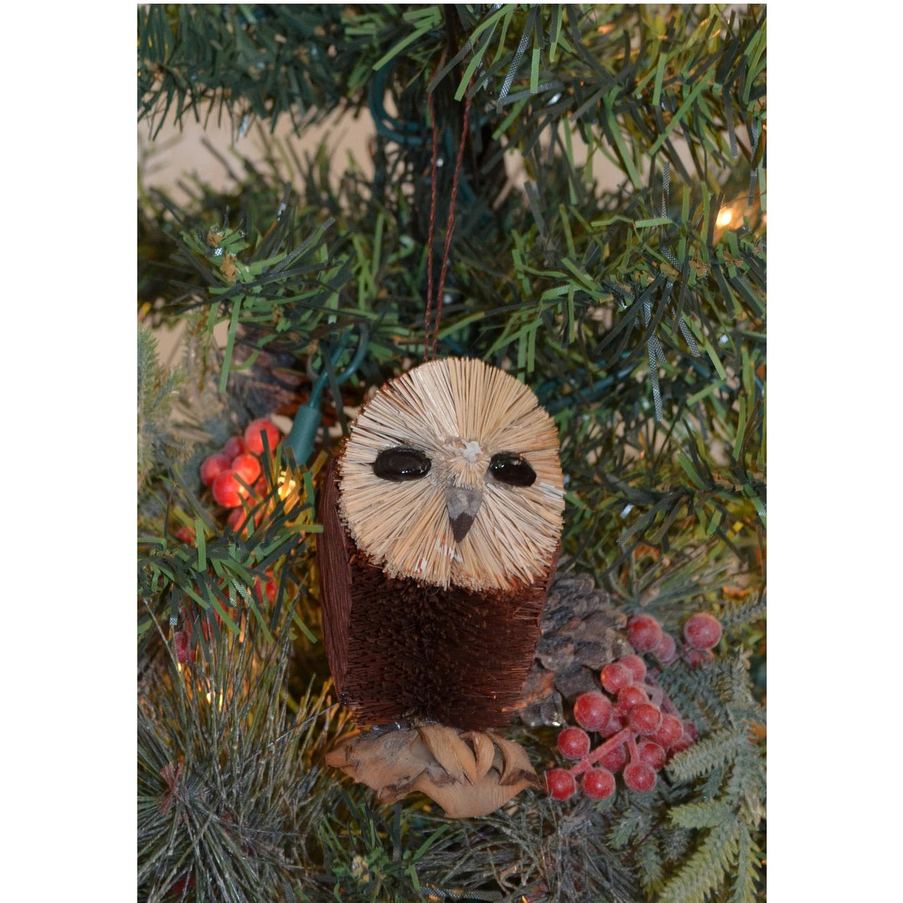 - Dark Brown And Beige Handcrafted Bristle Brush Owl Ornament