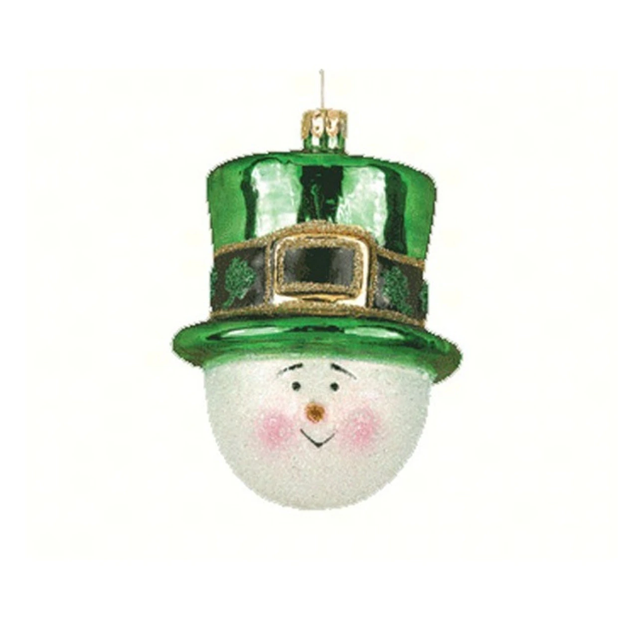 - Green Irish Snowman Glass Figurine Hanging Ornament