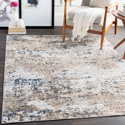 5.25′ X 7.25′ Distressed Beige And Gray Rectangular Area Throw Rug