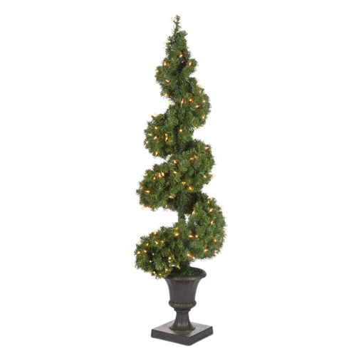 This winning spiral green tree is an exciting hard-to-find Christmas decor. The clear lights are super cool matching the color of the tree. This peppy charm is customized for your needs so that you can decorate your abode according to your interest