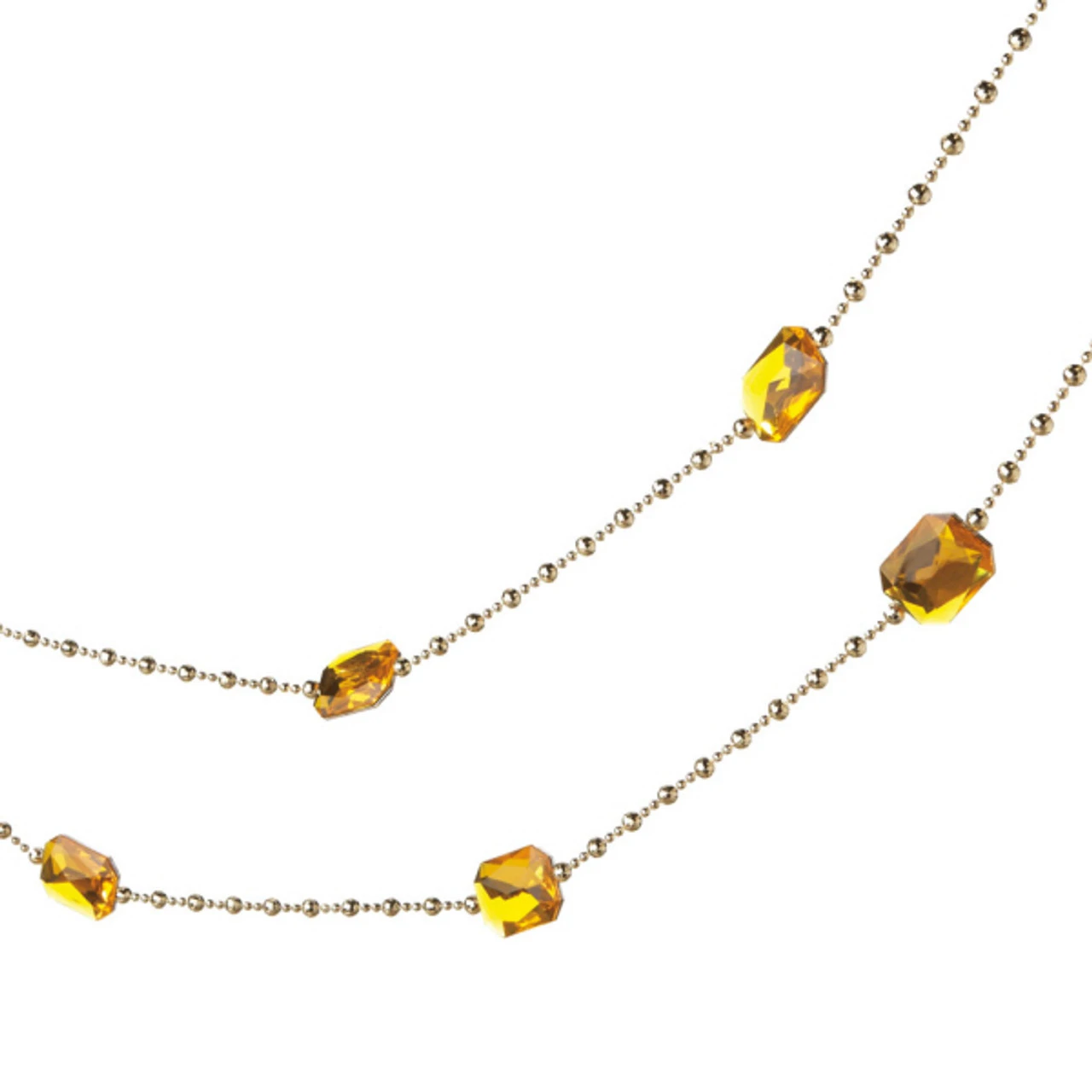 Sink in delight for this holiday season with a charmingly adorned home! This scintillating Christmas garland comprising rectangular gold faux jewels and faceted metallic gold beads, which can infuse more festivity to your decor. With gold loops on each end, this enchanting accent can offer an instant focal point to the guests.