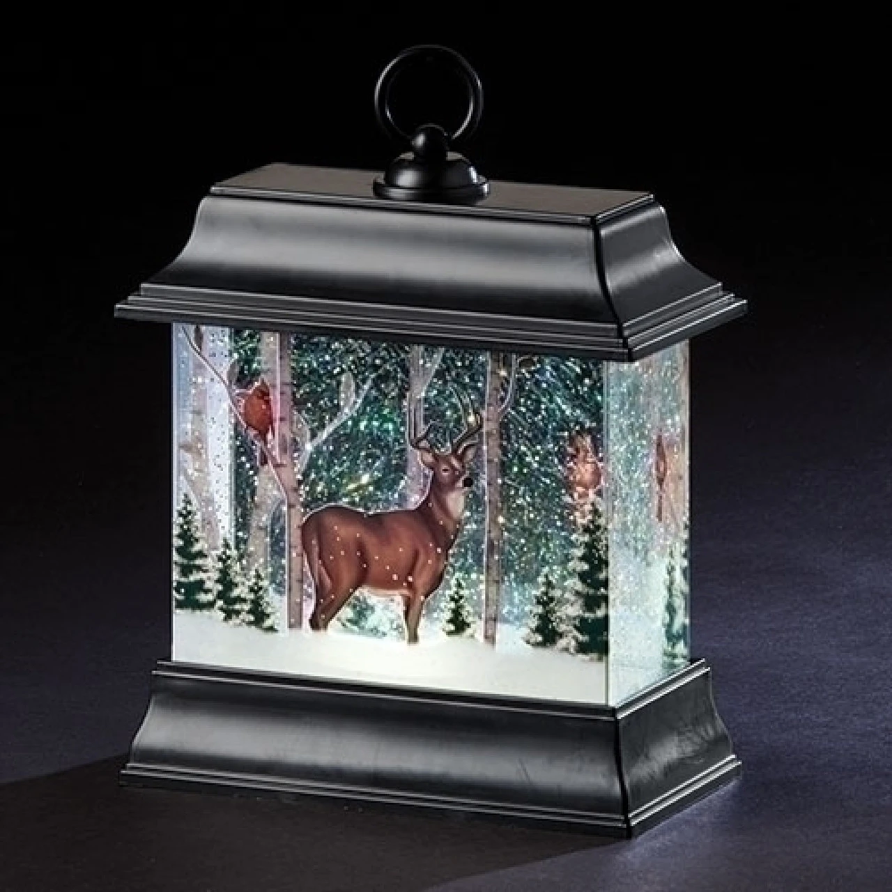 Add some sparkle to your Christmas decor with this deer in lantern swirl dome figurine that will provide an embellished glow to your home. The multi-colored glitter swirls inside, creating a winter wonderland. This can also be perfect idea as a gift.