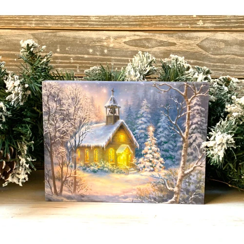Adorn your interior space with this eye-catchy lighted tabletop decor. It is a small accent that portrays a realistic artwork of a Chapel with an easel back and twinkling lights to make it more alluring. This tabletop decor is ideally suited for your mantle, nightstand, or shelf.
