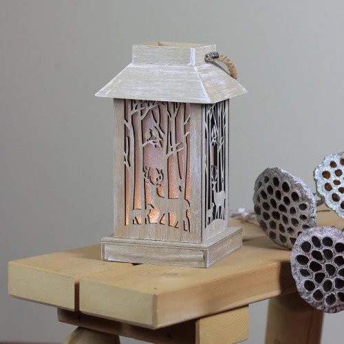 - Pre-Lit Wooden Deer Silhouette Christmas Lantern Decoration