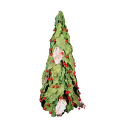 Roman 1.5′ Slim Twas Night Red Holly Berry And Leaf Artificial Christmas Cone Tree – Unlit