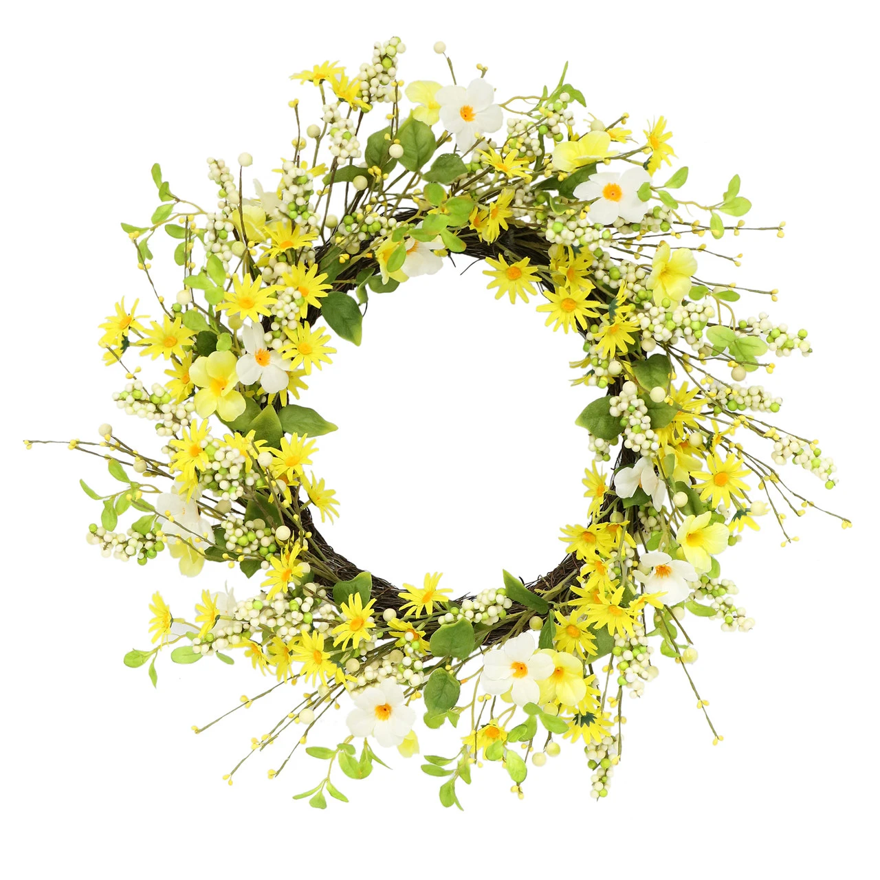 - Yellow Daisy And Dogwood Artificial Floral Wreath