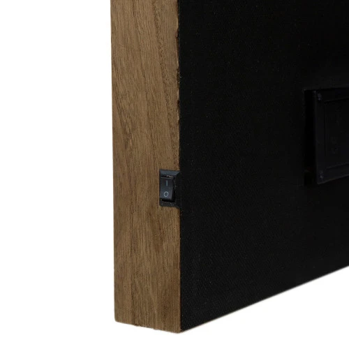 - Features a brown wooden frame with color changing lights surrounding the words Have a Holly Jolly Christmas