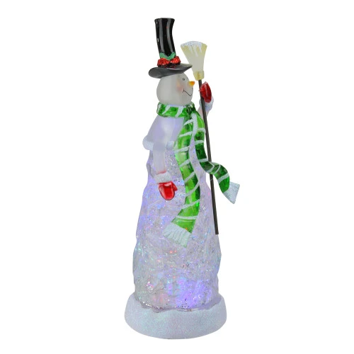 A wintry day is not complete without a snowman in some form. This charming glitter dome features a snowman decorated with iridescent glitter details complete with a top hat, mittens, and scarf holding a broom. Glitter swirls in his belly while being illuminated by a color-changing LED light.