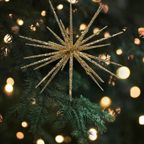 - Gold Glitter Starburst Christmas Hanging Ornament