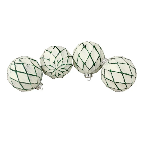 - 4 Count Green And White Antique Style Christmas Ornaments