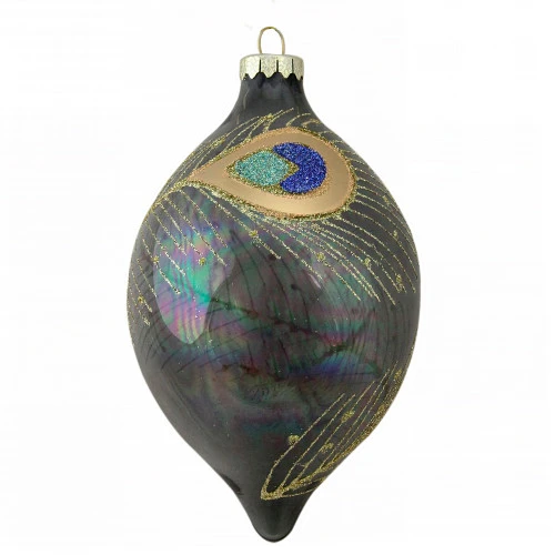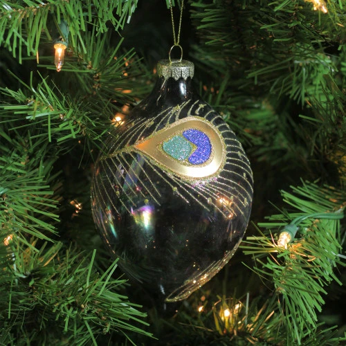 - Black And Gold Peacock Feather Christmas Finial Ornament