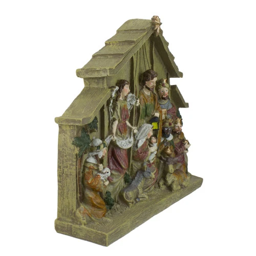 Joseph, Mary, baby Jesus, two wise men, and an angel