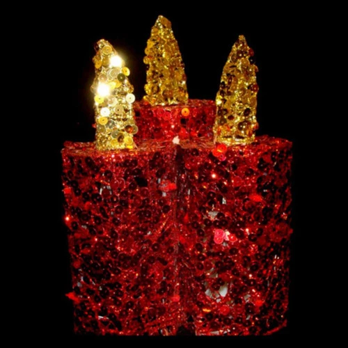 Shimmering LED lighted triple candle drenched in sequins and glitter