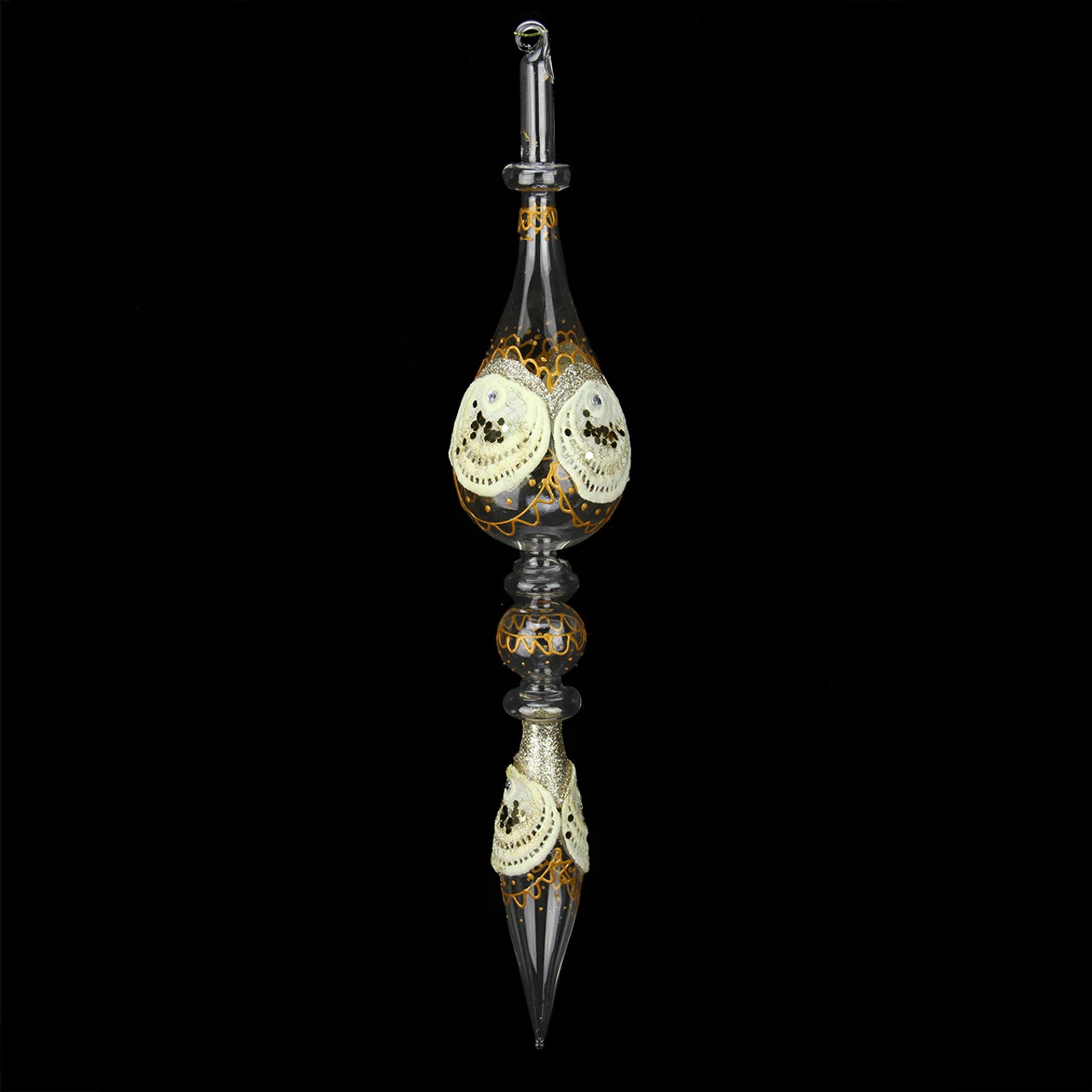 Roman 17″ Clear And Gold Laced Finial Christmas Ornament