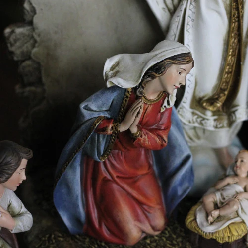 - Brown Joseph Studio Nativity With Back Wall Tabletop Decoration