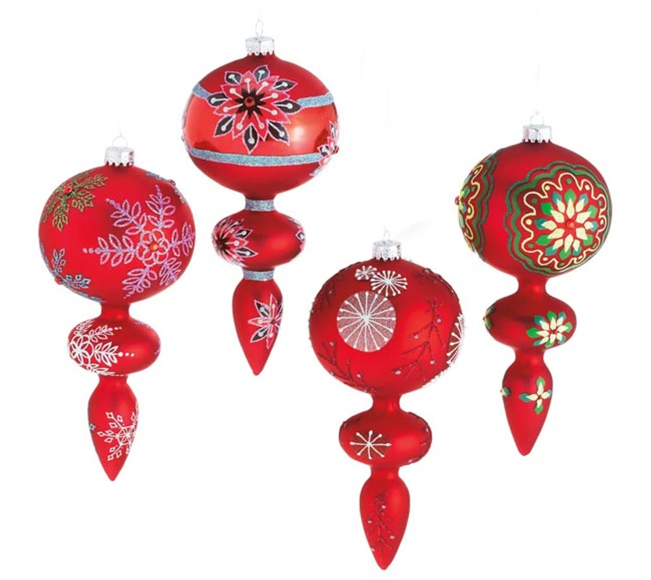 - Set Of 4 Red Snowflake Glass Finial Christmas Ornaments